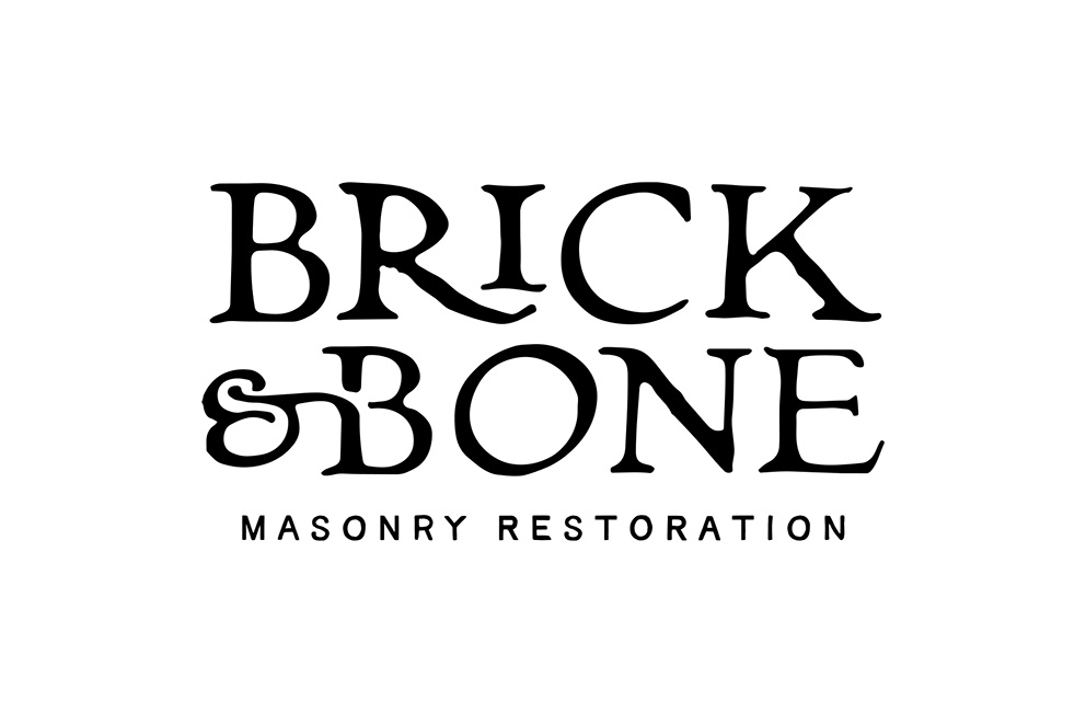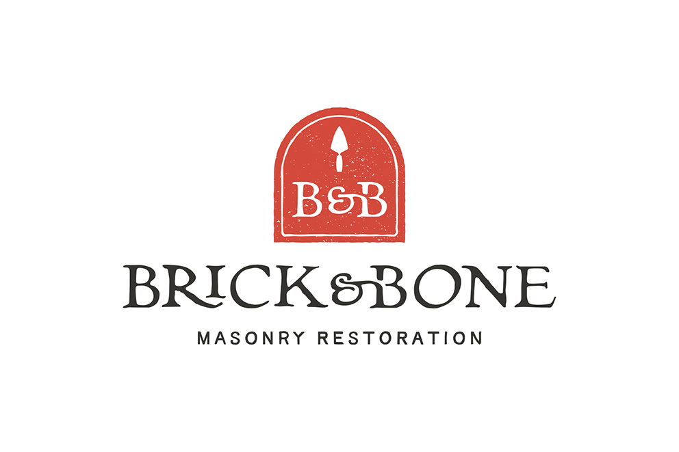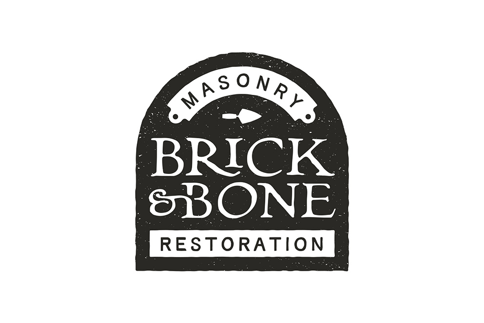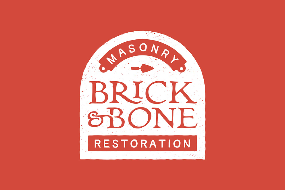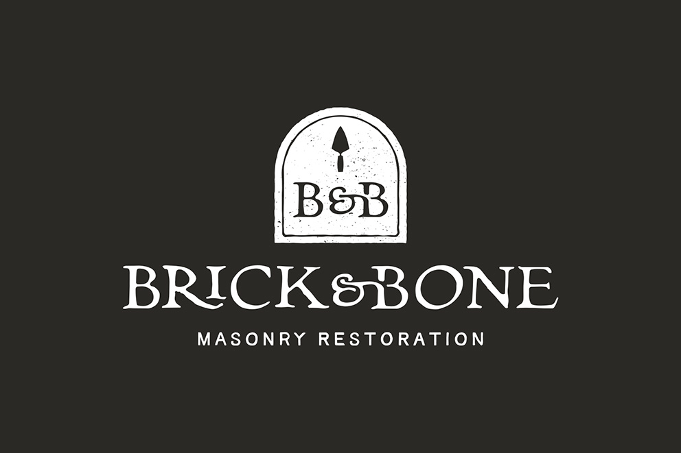 Brick & Bone Masonry Restoration is a Cincinnati-based business specializing in restoring historic brick and stone structures using traditional methods and materials. The rough textured gravestone shape and vintage-inspired type are a nod to the "bone" in the company name, which itself is a play on the phrase "good bones" in reference to old buildings.