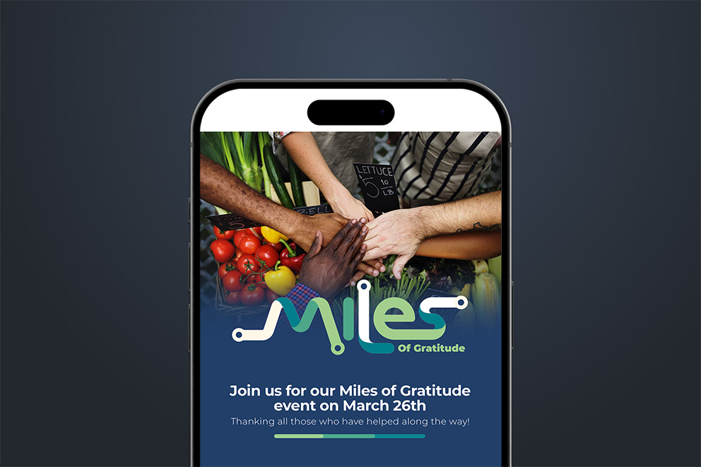 Last Mile Food Rescue is a Cincinnati nonprofit tackling food insecurity and food waste by connecting surplus food to those in need. I had the pleasure of working with Last Mile for two separate logo projects - one for their annual appreciation event titled "Miles of Gratitude" (and for the follow-up 5-year anniversary event), and the second for a new food repackaging service they began offering called "Last Mile on the Go".