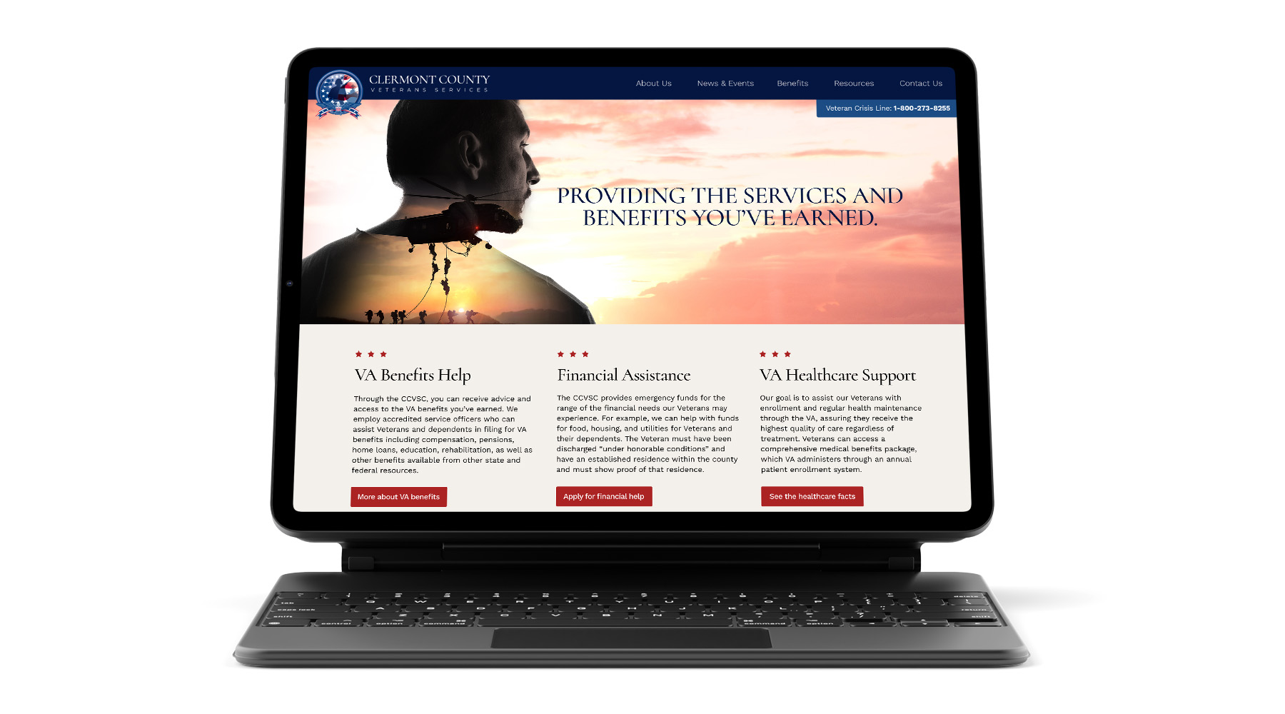 Goals & Challenges: Elevate the design, messaging, and user experience to increase awareness for the services Clermont County Veterans Services Commission provides. The goal was to encourage more veterans, primarily younger veterans, to take advantage of their invaluable assistance.