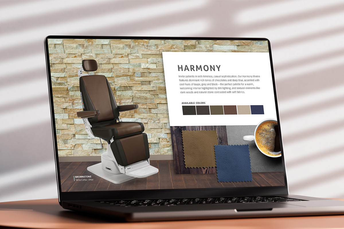 Reliance Medical Products exam chairs have long been known for their durability and reliability. The Premiere Collection is a lineup of chairs that shifts the focus to style with a variety of new designs and upholstery styles. The video and landing page were produced to introduce the collection at the ASCRS tradeshow.