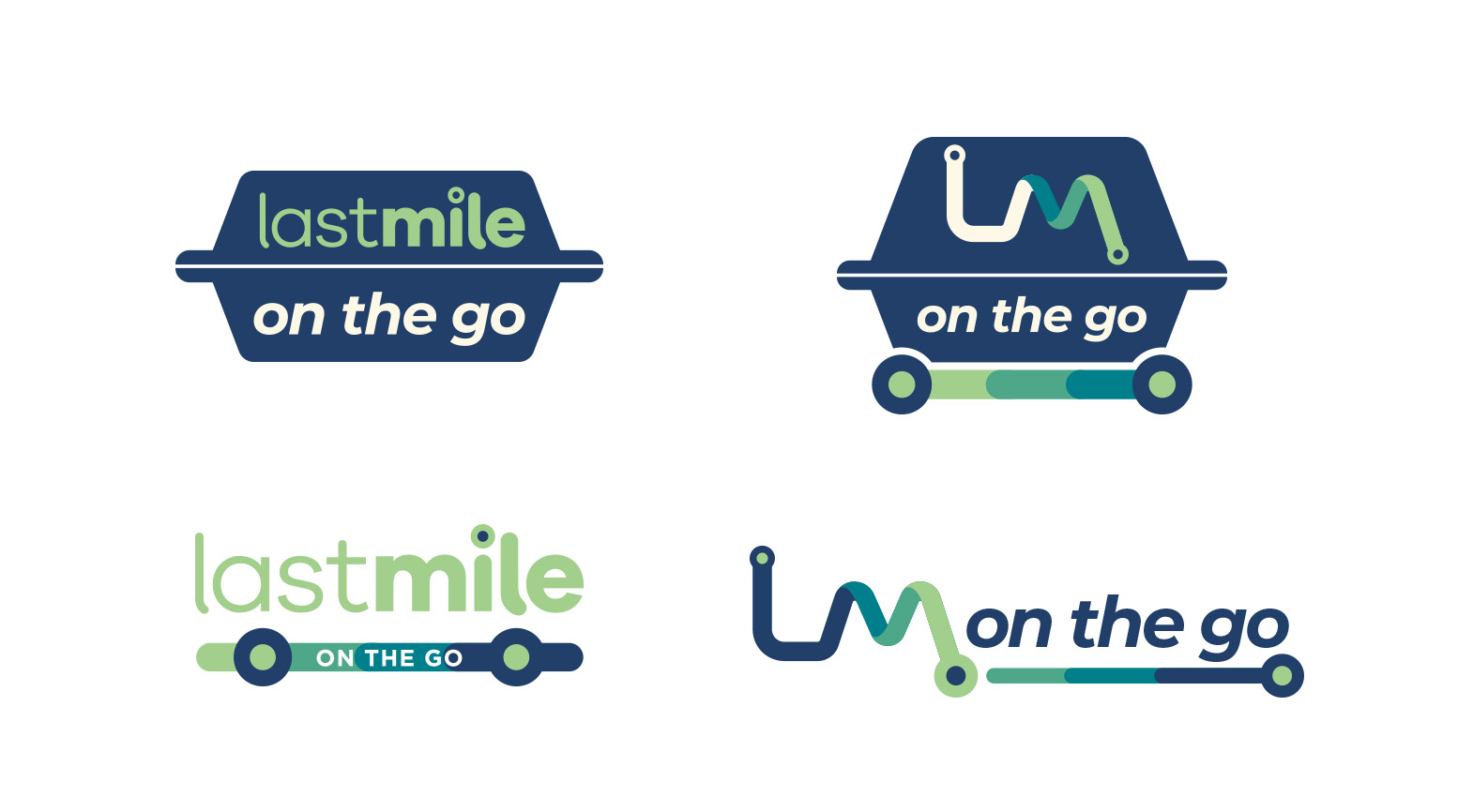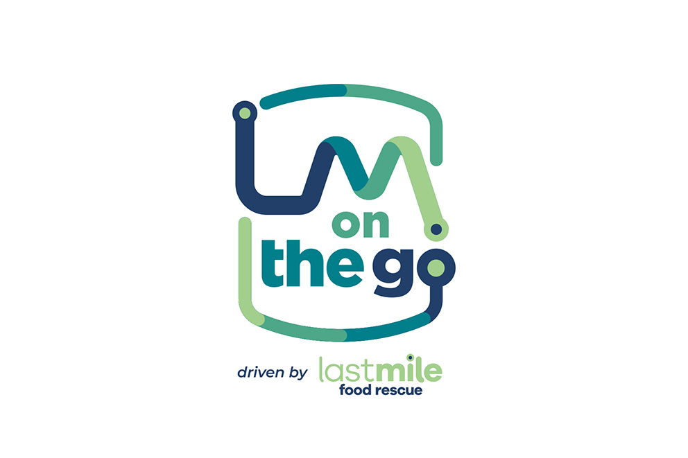 The "Last Mile on the Go" program is Last Mile's repack initiative that focuses on repackaging rescued food for easy distribution. The logo mark used items representing food packaging or movement as inspiration, with the chosen design being a shape inspired by a 3-dimensional outline of a can.